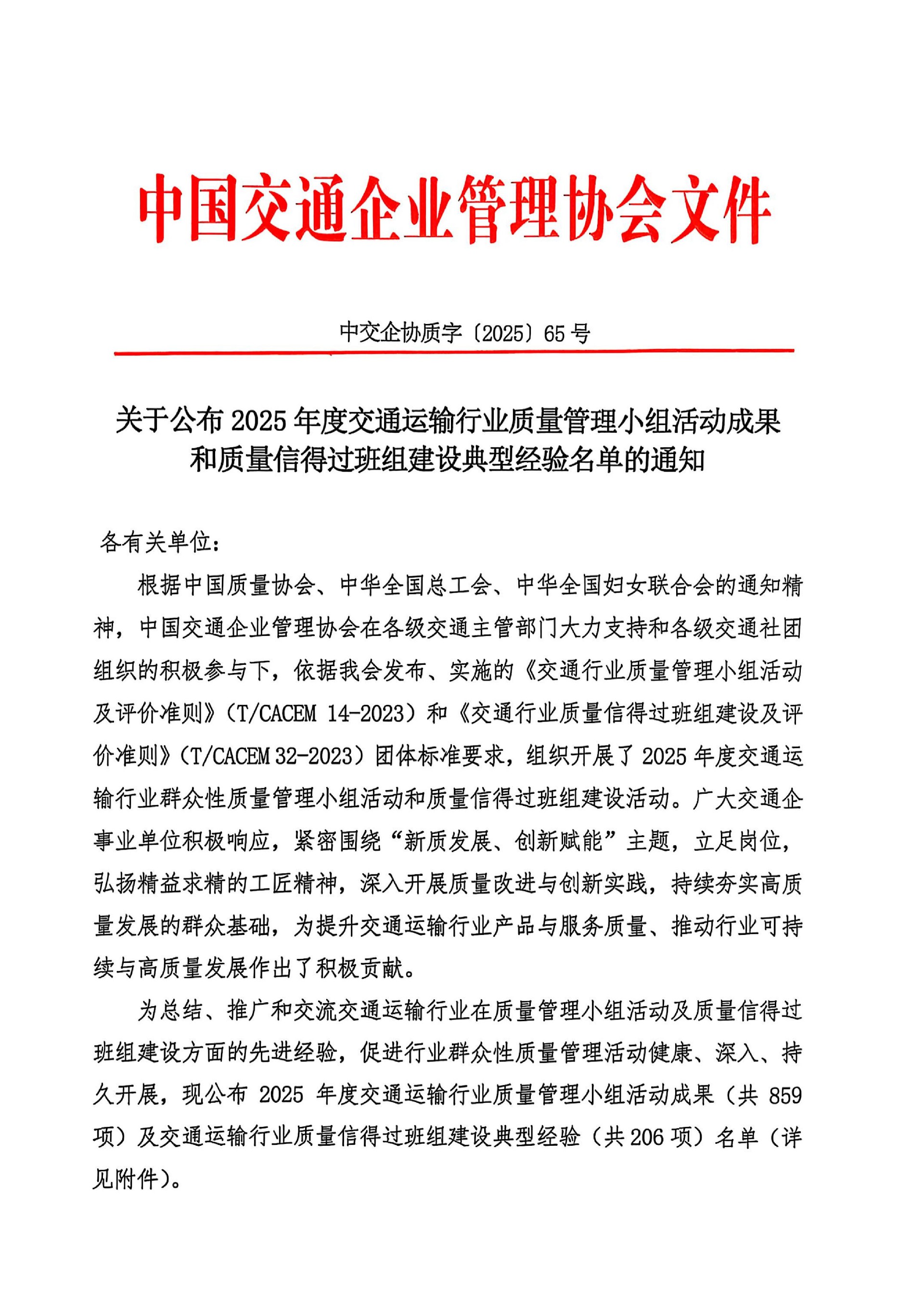 2025年11月20日,中國交通企業(yè)管理協(xié)會公布了年度交通運(yùn)輸行業(yè)質(zhì)量管理小組活動成果獲獎名單。開發(fā)路東延快速化改造工程“瑞沃···